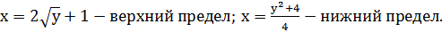пределы для внутреннего интеграла по переменной х. Выразим х из уравнений: