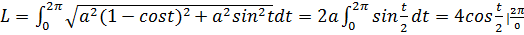 циклоиды соответствует изменению параметра t от 0 до 2π. Следовательно,
