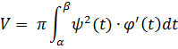 поверхности тела вращения вокруг оси х кривой, заданной на отрезке [a,b] параметрически: x=φ(t), y=ψ(t) (t0 ≤t ≤t1)