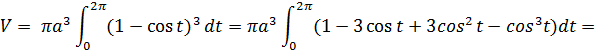 Задача №4. Найти объем тела, полученного при вращении арки циклоиды