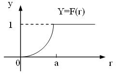 влучення. Ймовірність того, що ця випадкова величина набуває різних значень r від нуля до а, обчислюється за
