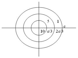 влучення від центра мішені стрілець одержує 10, 5 чи 1 бал, відповідно.