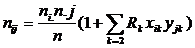 володіють даним поєднанням значень ознак (коміркова частота) – nij.