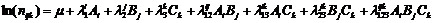 λijkABC – ефект взаємодії i-ого рівня ознаки А, j -ого рівня ознаки B та k-ого рівня ознаки C;