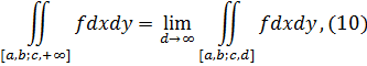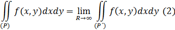 подвійного інтеграла узагальнюється на випадок необмеженої області, або на