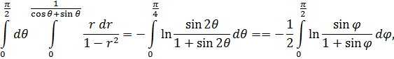 легко обчислити, якщо перейти до полярних координат; перший квадрант, на