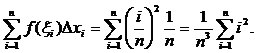 выражение для интегральной суммы, предполагая, что все отрезки [хi-1; хi] разбиения имеют одинаковую длину Δхi, равную 1/n, где n –