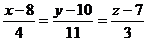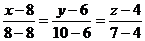 проходящей через точки А1(8; 6; 4) и A4(8; 10; 7).