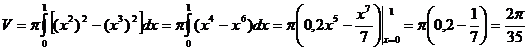 тела, образованного вращением фигуры, ограниченной графиками функций вокруг оси