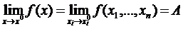 (пишут еще f (x, y)→А при (x, y)→ (х0, у0)),