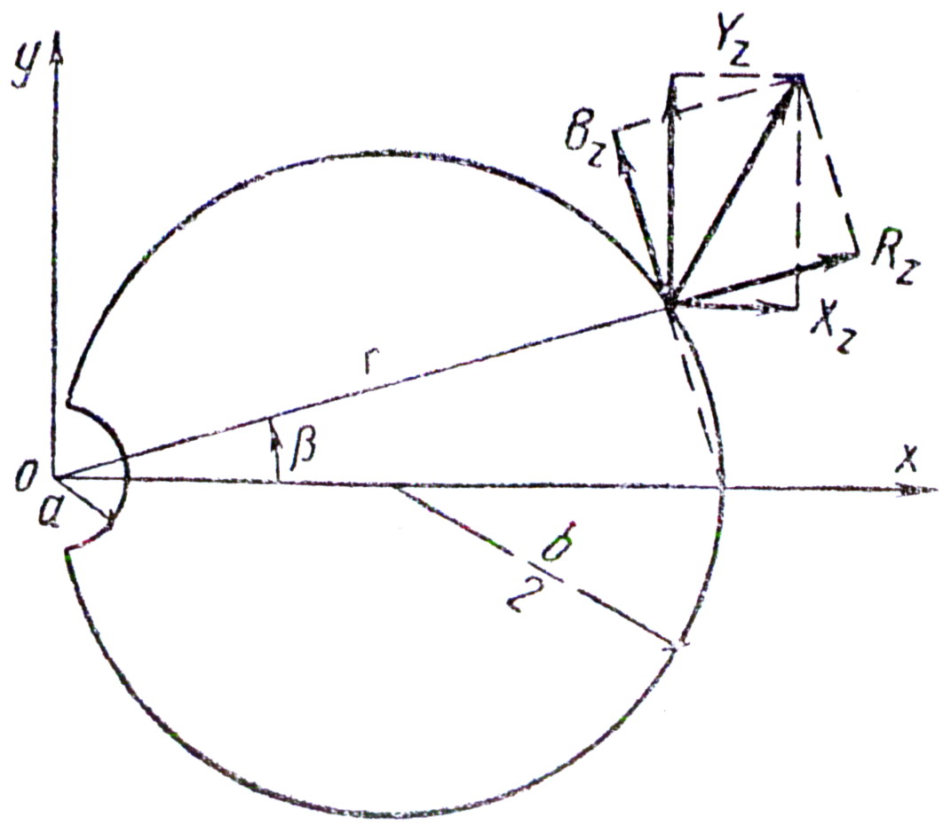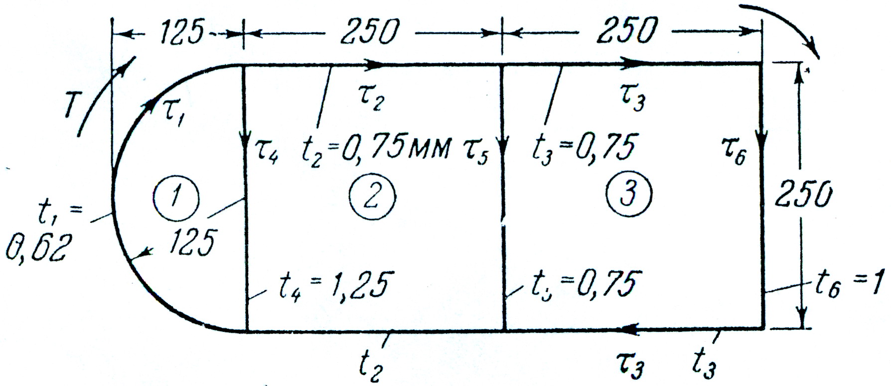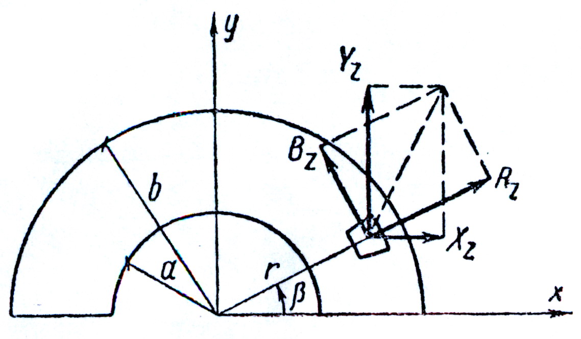 с поперечным сечением в виде полукольца скручивается моментом Mz (рис. 25).
