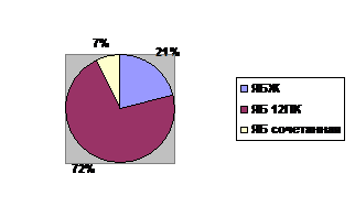 64,8-78,6% , ЯБЖ в 15-27,4%, сочетанная в 6,2-7% случаев.