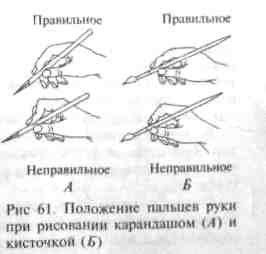 рисованием следует научить ребенка правильно держать в руке карандаш: между