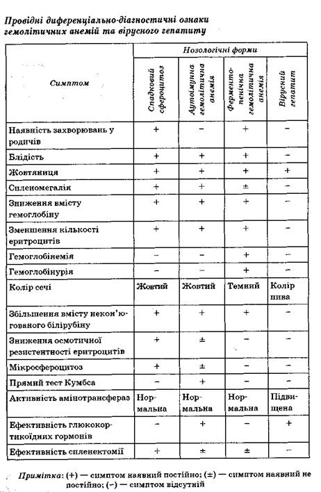 селезінки, зміна кольору сечі притаманні як гемолітичним анеміям, так і
