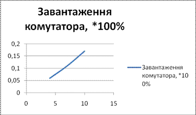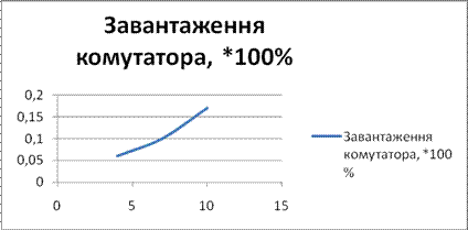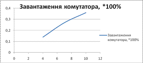 Залежність завантаженості комутатора КРГ1 від кількості абонентів