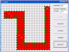 точки кратчайшего пути, которые далее отображаем с помощью массива Shape’ов.