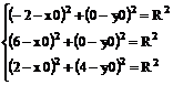 = 2, y0 = 0, R = 4. Подставим полученные координаты центра окружности и