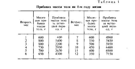 600 г, за 2-й и 3-й месяцы — по 800 г, масса тела каждого последующего месяца
