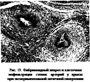 артериолонекроз с последующей клеточной инфильтрацией и гиалинозом. Эти