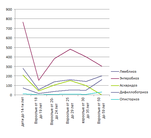 в Российской Федерации. Ежегодно выявляется от 60 до 100 тыс. больных аскаридозом,