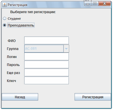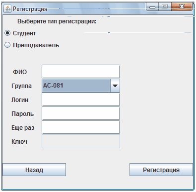 и попадает в окно регистрации пользователя. Там студент ставит переключатель в