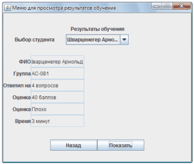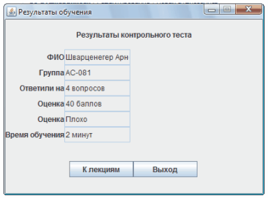 для записи в них результатов обучения конкретного студента.Пройдя все этапы