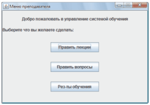 "Меню преподавателя". В этом окне преподаватель может выбрать то, что