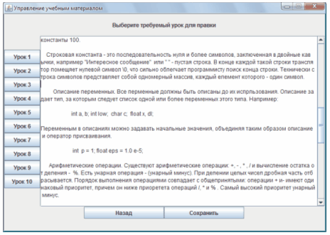 то попадает в окно, где ему предоставляется учебный материал. Если студент не