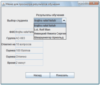 просмотреть результаты обучения студентов .Для этого необходимо выбрать из