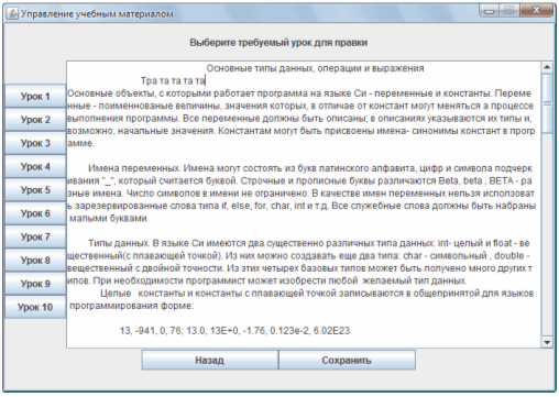 реалізує наступні функції. Читання навчального матеріалу з файла. Надання