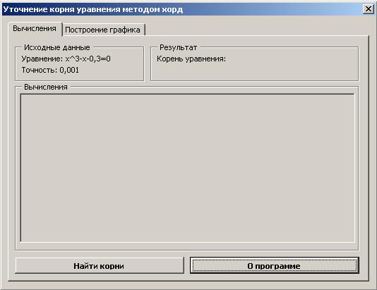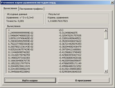 программного модуля для нахождения методом хорд корня уравнения x3 - x - 0.3 =