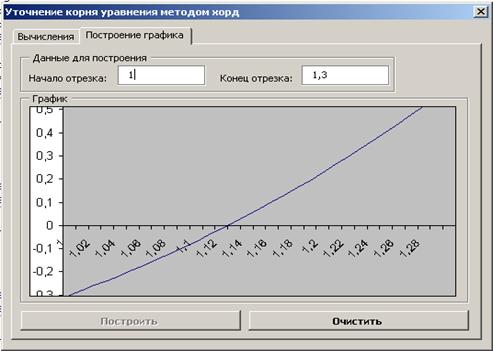 принимает значения с разными знаками. Заканчиваем процесс уточнения корня,