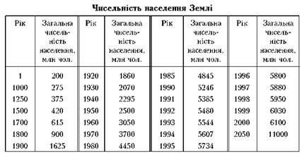 У табл.1 наведено дані про збільшення чисельності населення Землі від появи