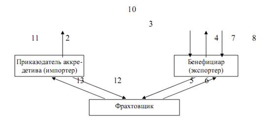 фрахтовщика экспортеру; 4 – документы передаются от экспортера импортеру (с