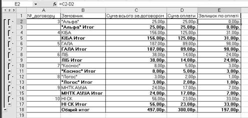 Розрахунок відомості про виконання договорів за допомогою MS Excel