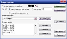 вікно «Пошук рішення» для знаходження мінімуму