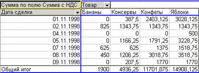 таблиц выберите в качестве заголовков столбцов поле Товар. Нажмите