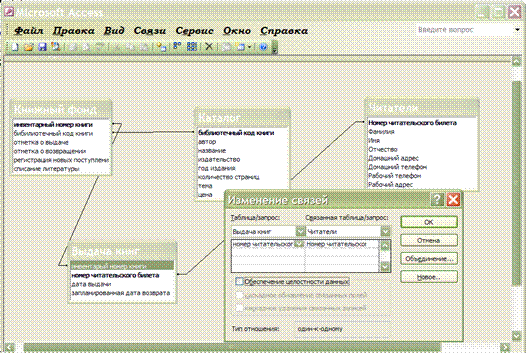 таблицами были установлены связи между данными таблицами. Таблицы БД
