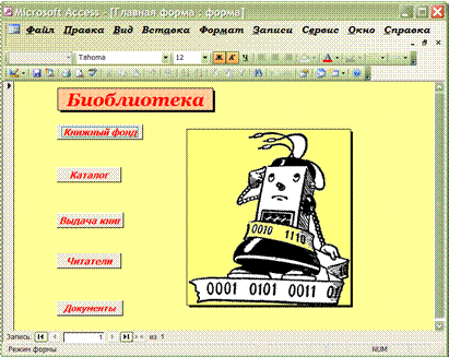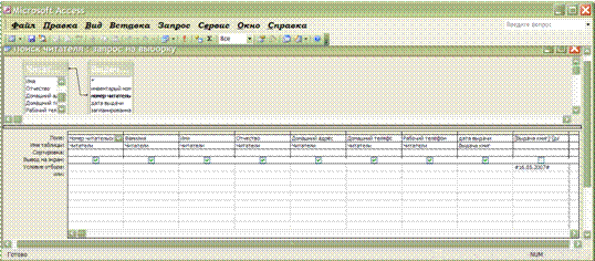 выбран для разработки БД АРМ служащего библиотечного фонда программный продукт Microsoft Access.