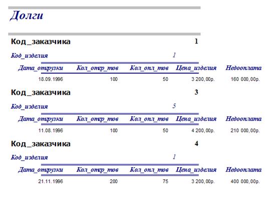 Рис.3. Отчёт запроса по долгам