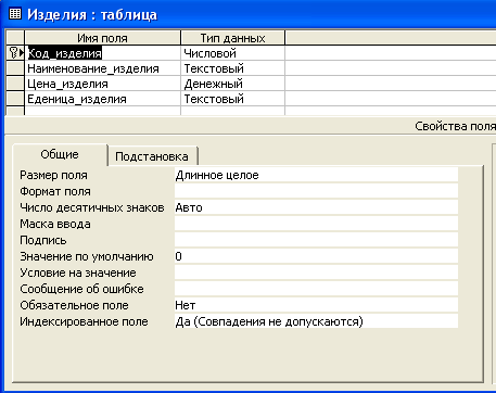Каждое поле содержит определенную его характеристику. При работе с данными из