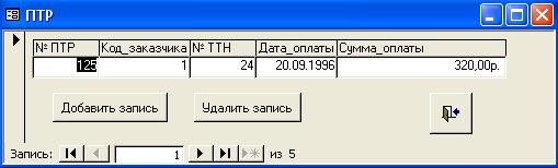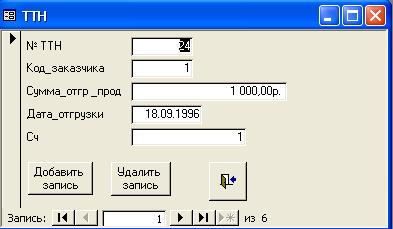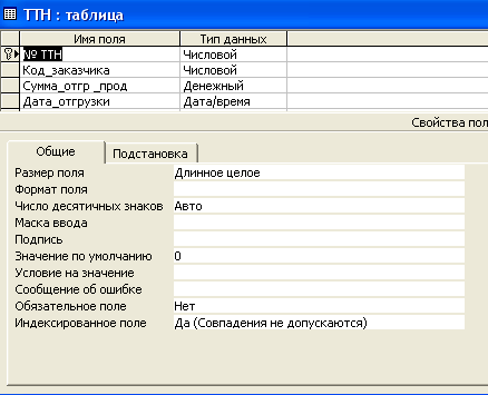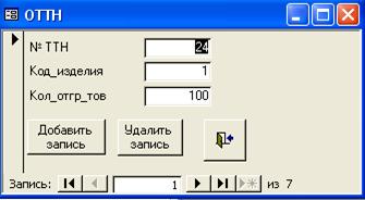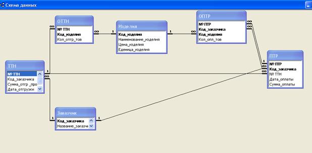работе должны быть созданы таблицы: ТТН, ПТР, ОТТН, ОПТР, Изделий и Заказчиков