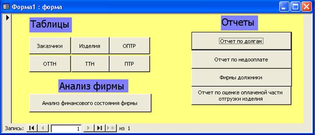 кнопочная форма, содержащая основное меню. Основное меню содержит шесть кнопок