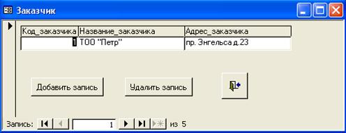 нажатии на кнопку <Заказчики> открывается форма, содержащая сведения о