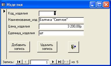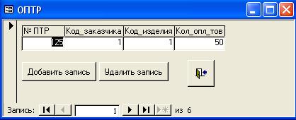 можно добавить запись, удалить запись. Форма также содержит кнопку «Выход».