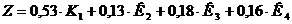 1,4 х Х2 + 3,3 х Х3 + 0,6 х Х4 + 1,0 х Х5,