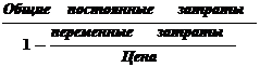затрат, это — критическая точка, по отношению к которой область прибыли