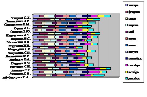 графический анализ количества заключенных в 2007 г. по каждому сотруднику.