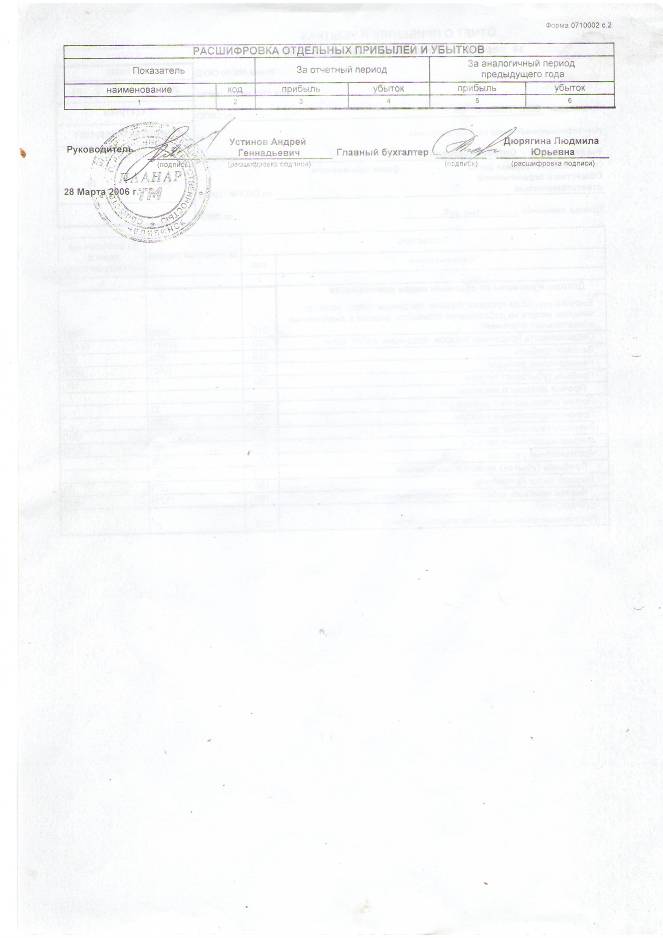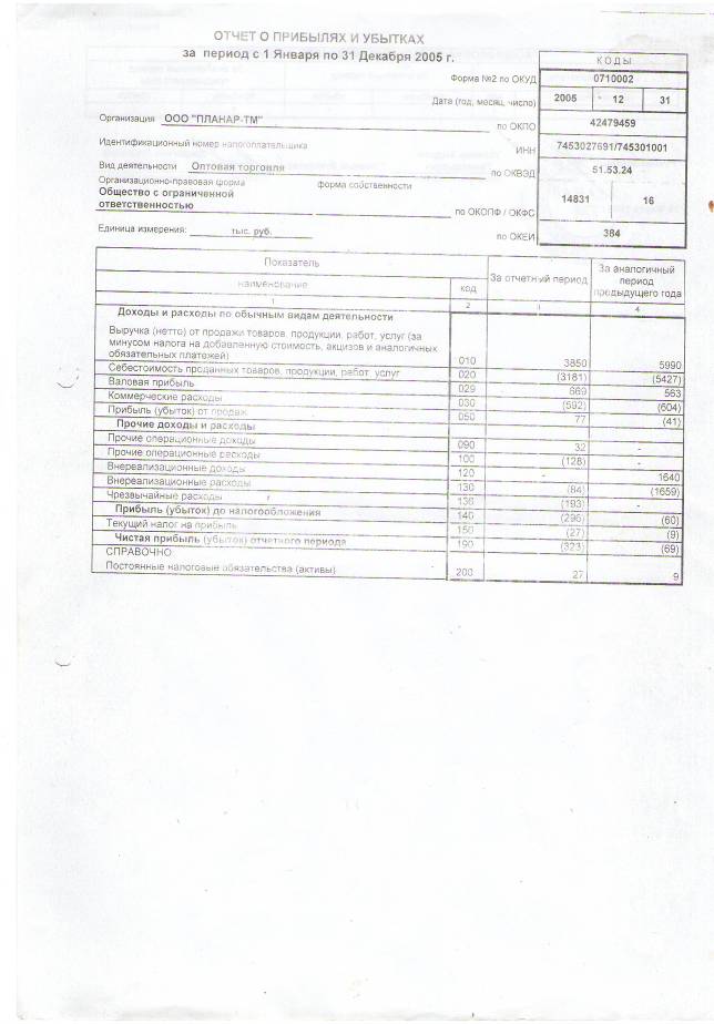 2. Отчет о прибылях и убытках ф. №2 за 2005 год. 56