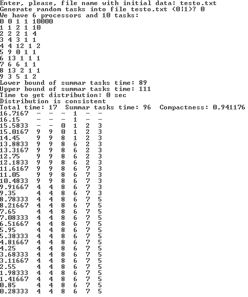 Пример сессии работы с разработанным программным средством в диалоговом режиме